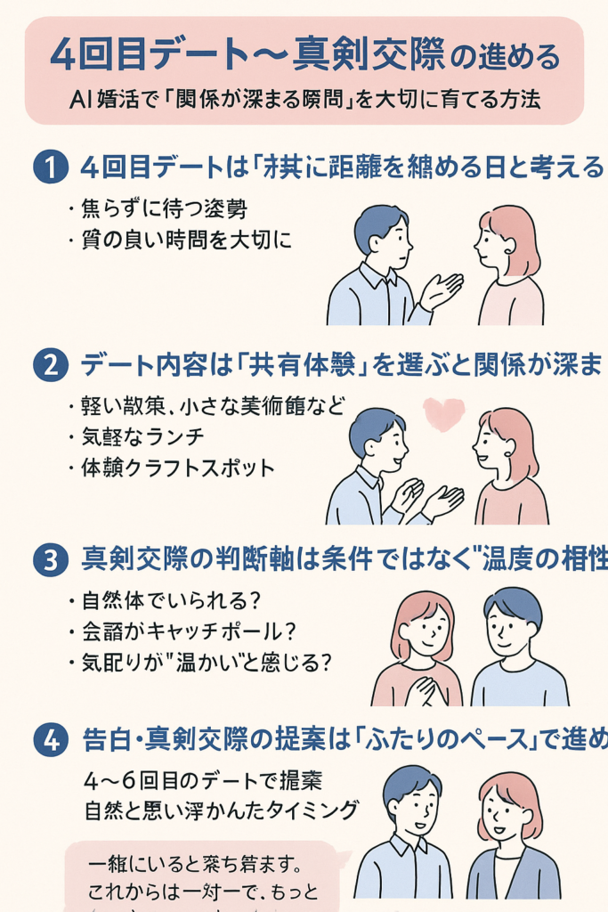 1. 4回目デートは「距離が自然に縮まる日」と考える